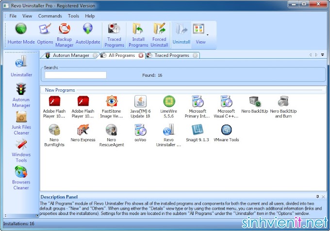 Công cụ không chỉ thay thế cho trình Add/Remove thông thường của Windows mà còn gồm các công cụ khác giúp bạn quét sạch hệ thống Windows. Với các thuật toán tiên tiến, Revo Uninstaller Pro sẽ tiến hành phân tích dữ liệu ứng dụng trước khi gỡ bỏ và quét những gì còn sót lại sau khi gỡ bỏ chương trình. Sau đó, bạn có thể gỡ bỏ những file, folder và key registry không cần thiết trên máy tính.